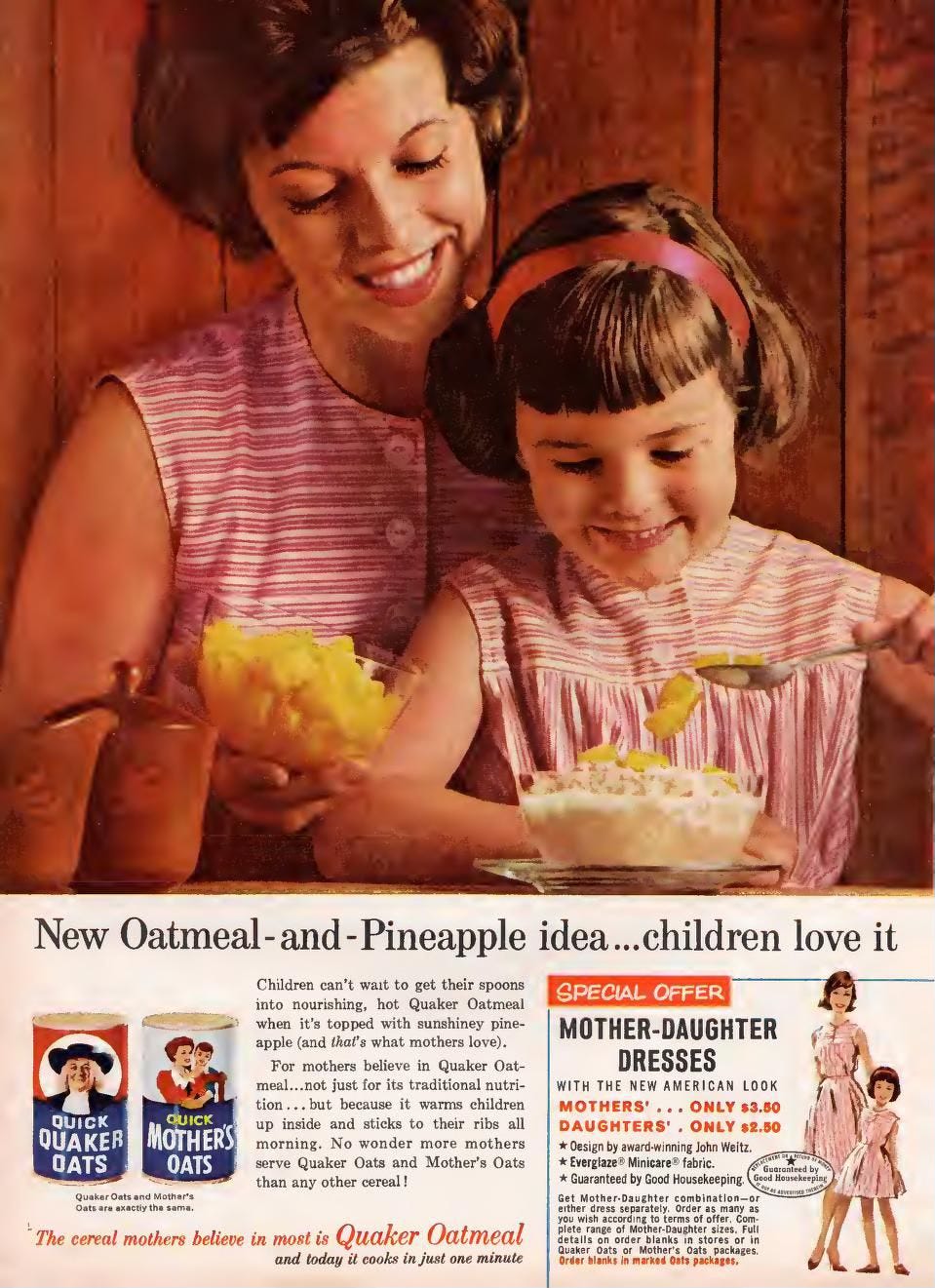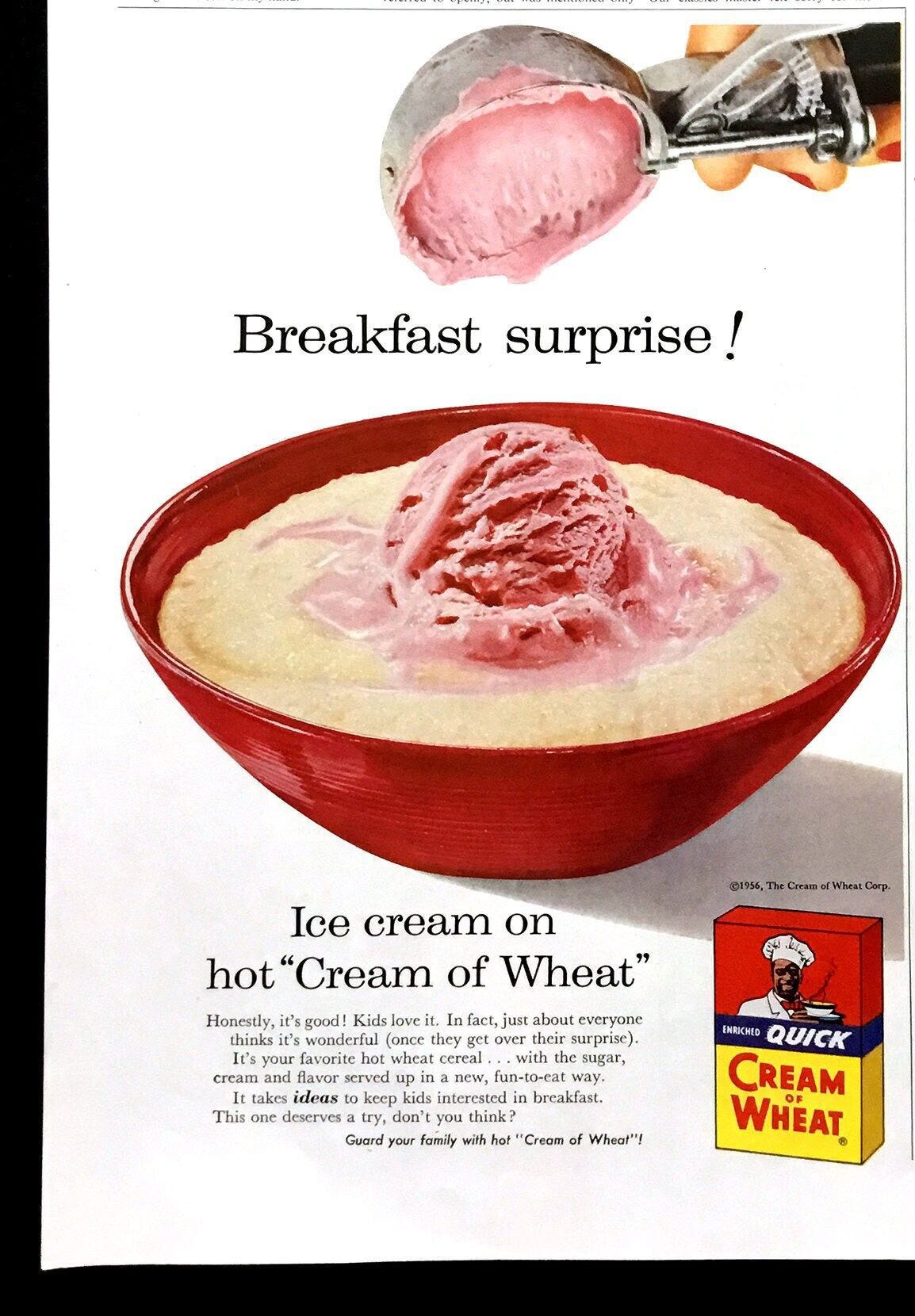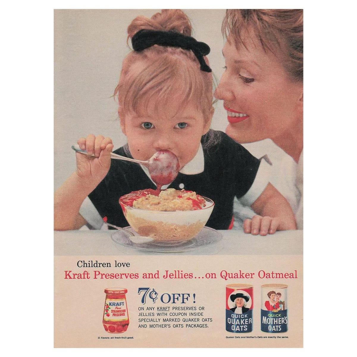 Also, this is the second time they’ve told us that Quick Quaker Oats and Quick Mother’s Oats are exactly the same, which raises the question of why they both exist. Are there oat-eaters out there who trust Quakers but not Mothers, and vice versa? Because frankly, after seeing this next ad, I’m going full Fox Mulder. I trust no one.