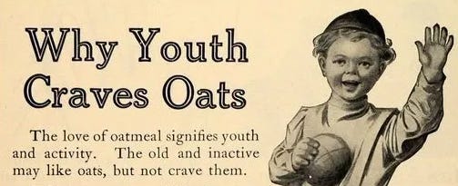 Anyway, the message is clear. While old farts may covet oats, they are the exclusive and rightful property of Flaming Youth. Okay, got it. So how did that sales strategy ultimately work out?