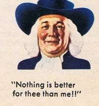 But as we conclude our look at the Society of Friends and their efforts to promote tasteless gruel, I don’t want people to think I’m picking on the Quakers (feel free to shake my family tree; you’ll get quite a crop of ‘em). So let’s go for a wow finish, with the most We Fucking Give Up ad in the entire genre: